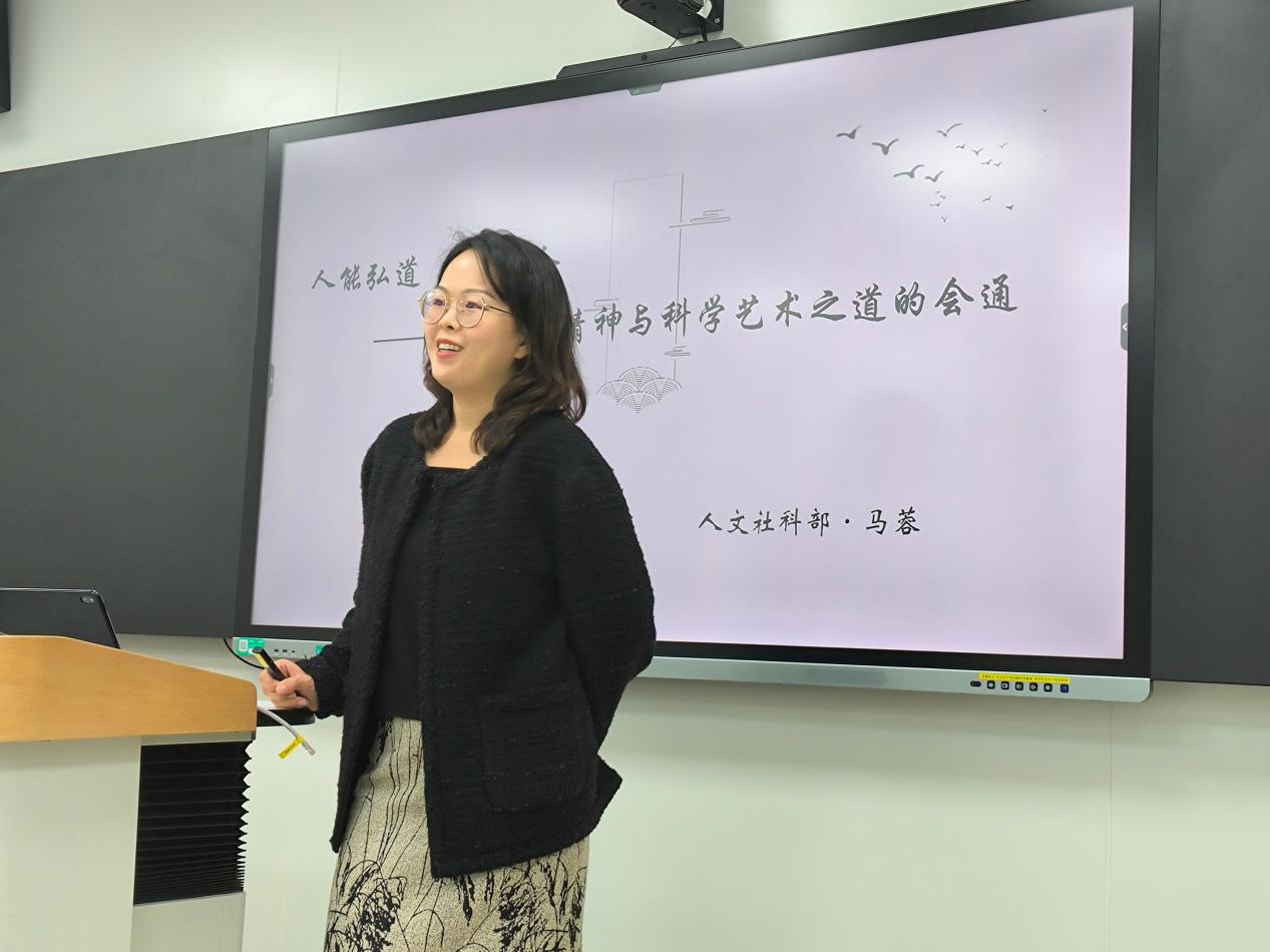 2025年4月10日下午,人文社科部马蓉老师应邀在教学楼608举办“人能弘道 非道弘人——原始儒家精神与科学艺术之道的会通”美育专题讲座,学院20余名师生参加。活动由研究生部、人文社科部主办,“科学与艺术”课程组承办。