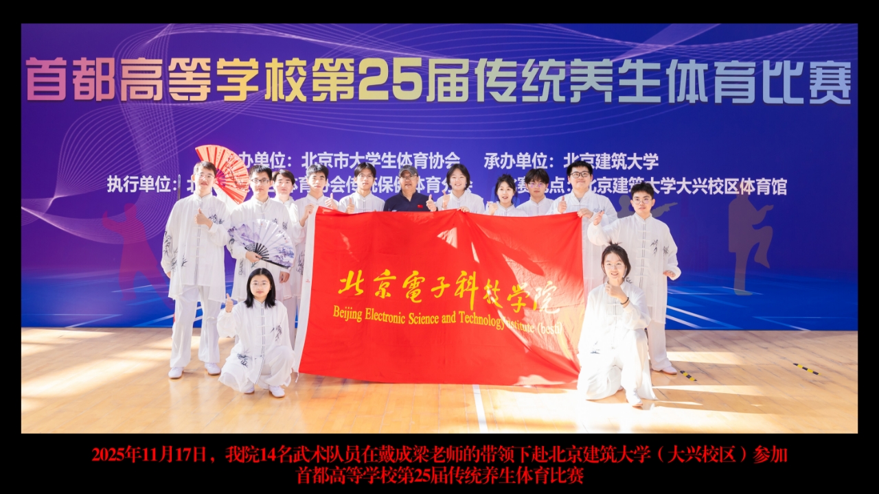 2025年11月16日,首都高等学校第25届传统养生体育比赛于北京建筑大学(大兴校区)隆重举行,本届赛事汇聚了来自35所高校的407名运动员。由戴成梁老师带队、14名武术队员组成的我院代表队参加了乙组角逐,并凭借出色发挥,以乙组团体总分第四名的成绩创下我院参赛以来的历史最佳纪录。本届赛事中,我院研究生群体的首次亮相与出色表现尤为亮眼:以博士生邹泽霄为主的6名硕博研究生,虽是初次组队参赛,却在强手如林的集体8式太极拳项目中沉着应战,一举斩获第5名,展现了卓越的竞技水准与团队风貌,实现了历史性突破。在他们的带动下,我院代表队多点开花——由陈嘉远为主的本科生队伍在集体24式太极拳中取得第4名;个人项目方面,陈嘉远、周子昂分获男子、女子24式太极拳第5、6名;董振国、李臻在男子8式和16式太极拳项目中均有佳绩入账。在技巧与表现力要求更高的太极剑、太极扇项目中,邹泽霄、袁志成、周子昂以行云流水的动作分获太极剑第3、4、5名;邹泽霄与李臻则凭借刚柔并济的演绎,将太极功夫扇第3、4名双双收获,充分彰显了我院学子全面发展的体育素养与昂扬向上的精神风貌。