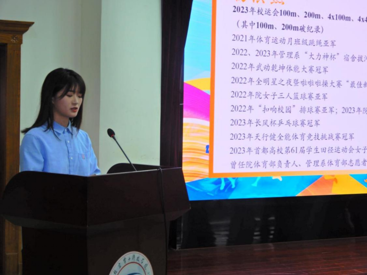 我们实现百花齐放,展现了多元共进的多彩风范。本次大会表彰了我系各放异彩的队伍。我系篮球队、足球队、排球队、羽毛球队和乒乓球队,他们以坚韧不拔的毅力和团结协作的精神,连连斩获佳绩,诠释了竞技体育的魅力。啦啦操队员们以其青春洋溢的笑容和灵动曼妙的舞姿,展现了我系学子的蓬勃朝气和昂扬斗志。合唱团以和谐优美的歌声,传递着爱与希望,他们用音乐的力量凝聚人心,展现我系深厚的人文底蕴和艺术修养。
