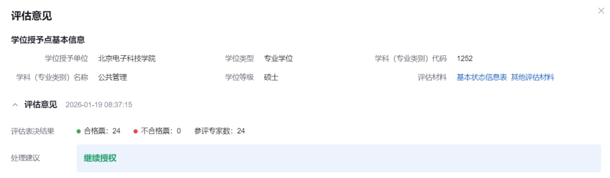 近日,我校收到2025年公共管理硕士专业学位授予点专项合格评估结果的反馈,我校全票通过,评估表决结果为“合格”,处理意见为“继续授权”。