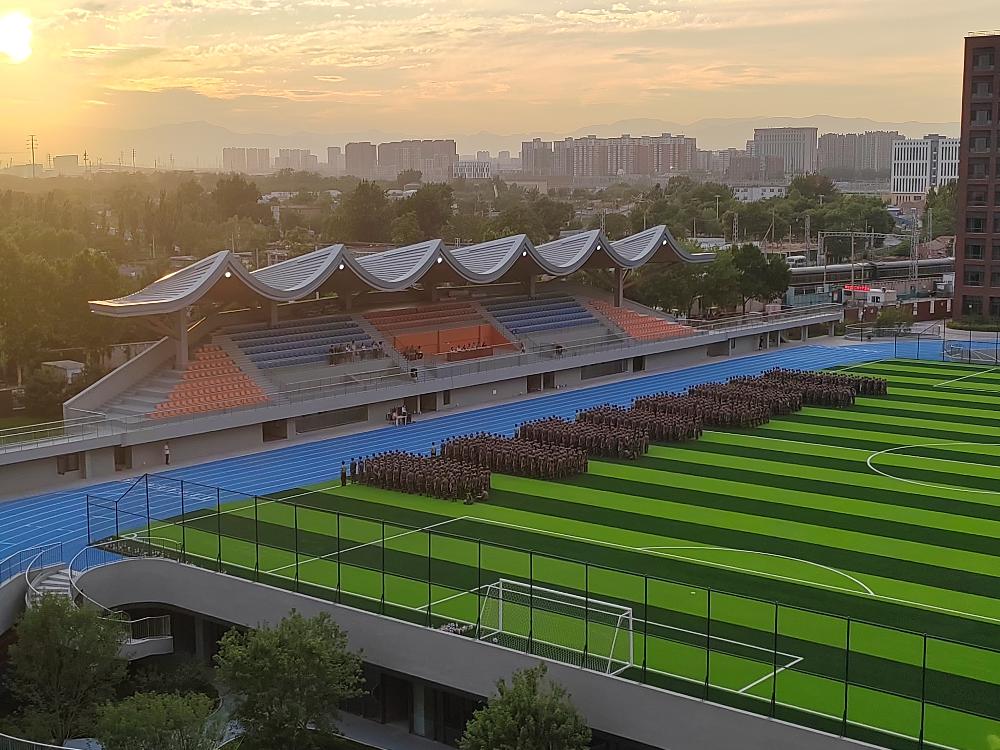 7月1日,电科院2021、2022级学生军训开营式在田径场举行。副院长肖嵩、承训单位负责同志、各系党总支书记、学生辅导员、受训学生班班主任、2021、2022级本科生和全体教官共约900人参加开营式。本次军训为期14天,训练内容主要包括分队队列动作、共同条令教育、基础战术和军体拳等。