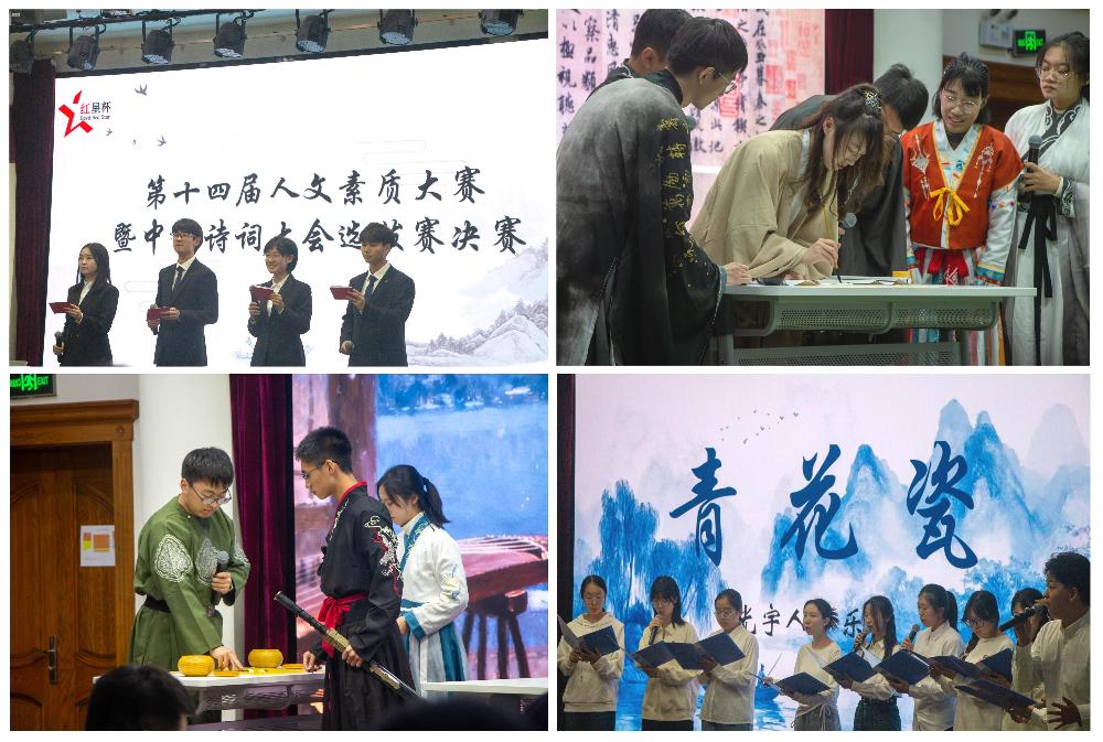 11月25日下午,学院举办第十四届人文素质大赛暨中国诗词大会选拔赛决赛。各系部代表队及学院自荐队以诗会友,共探经史,围绕文学、历史、哲学、艺术、科学等多领域题目展开角逐,为观众呈现了一场高水平的人文盛宴。最终密码系代表队获一等奖,管理系、电通系代表队获二等奖,网安系、研究生代表队和自荐队获三等奖,院领导及师生代表200余人到场观赛。