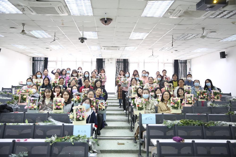 为庆祝第113个国际劳动妇女节,丰富女职工文化生活,37日下午,工会举办插花扎染活动院领导毛明、乔晓丽、姚思远出席,140余名女职工参加活动