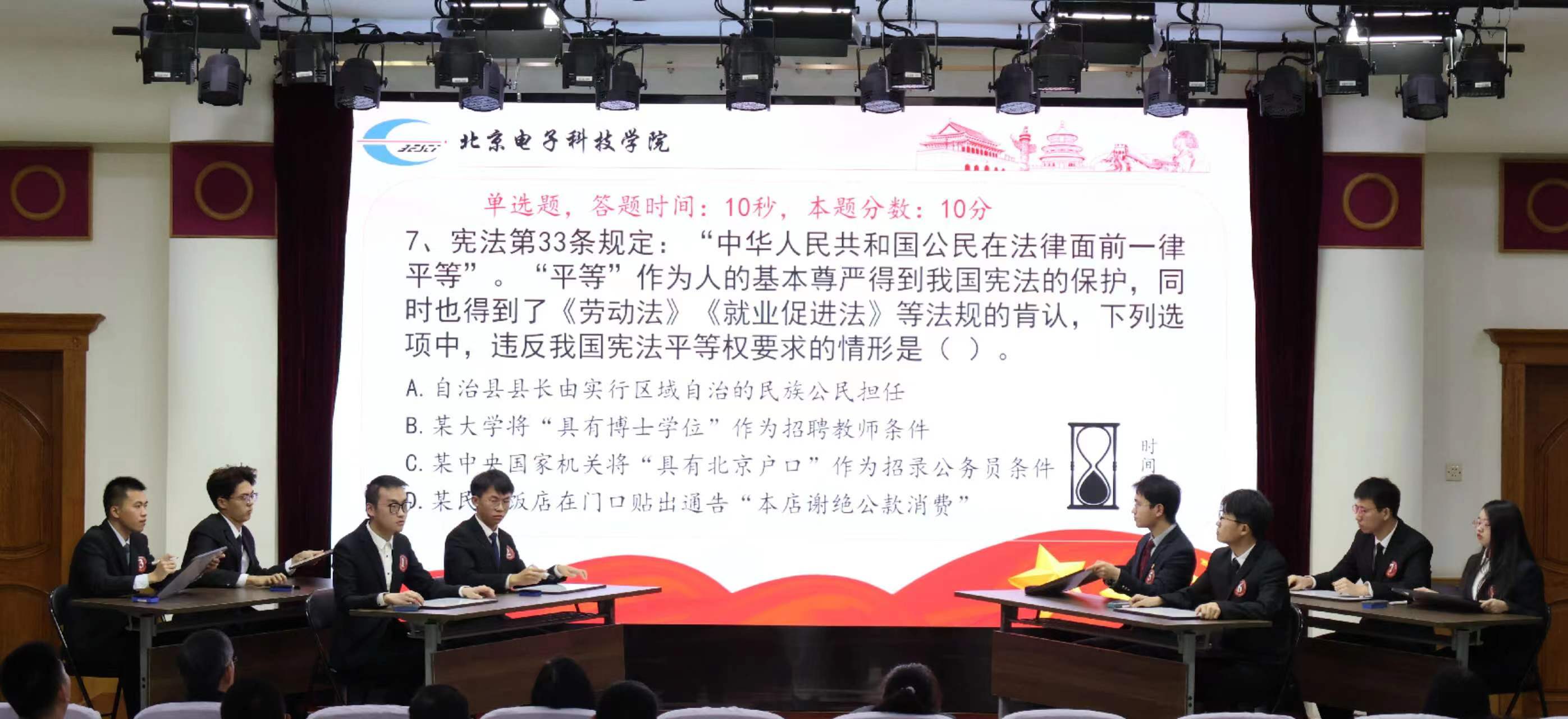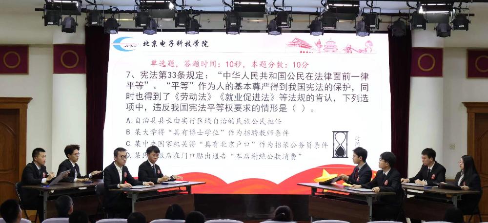 128日下午,电科院在学术报告厅举办红星杯第三届知史明鉴·学法律行知识竞赛决赛。院领导肖嵩各系部党总支书记、教职工青年学习小组成员代表以及师生代表200余人到场观赛。